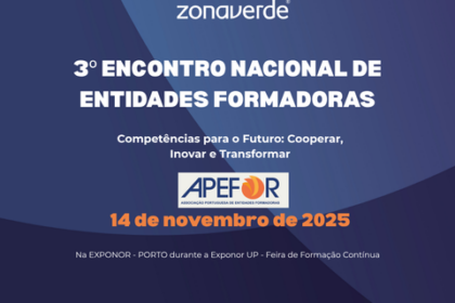 No próximo dia 14 de novembro de 2025, a APEFOR – Associação Portuguesa de Entidades Formadoras promove o 3.º Encontro Nacional de Entidades Formadoras, no Auditório da Exponor, integrado na Exponor UP – Feira de Formação Contínua.
